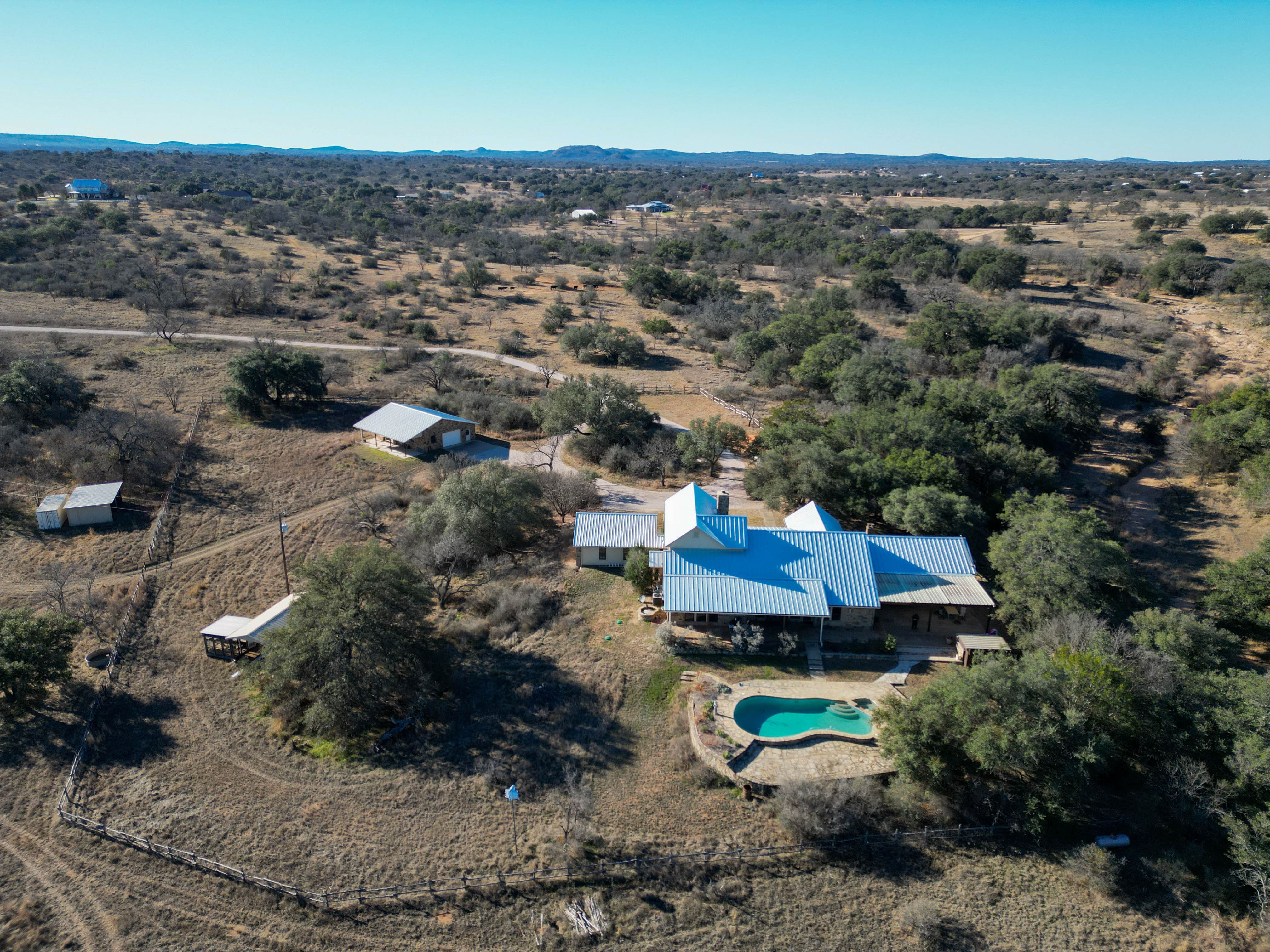 The land itself is equally impressive, featuring paved access, multiple water wells, and beautiful Flag Creek frontage. Native wildlife, established trees, and rolling terrain create a secluded atmosphere while remaining less than a mile from Llano via Ranch Road 2323.