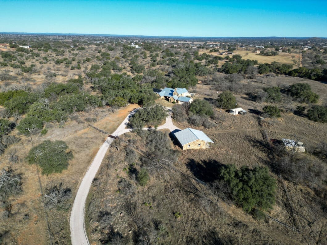 The land itself is equally impressive, featuring paved access, multiple water wells, and beautiful Flag Creek frontage. Native wildlife, established trees, and rolling terrain create a secluded atmosphere while remaining less than a mile from Llano via Ranch Road 2323.