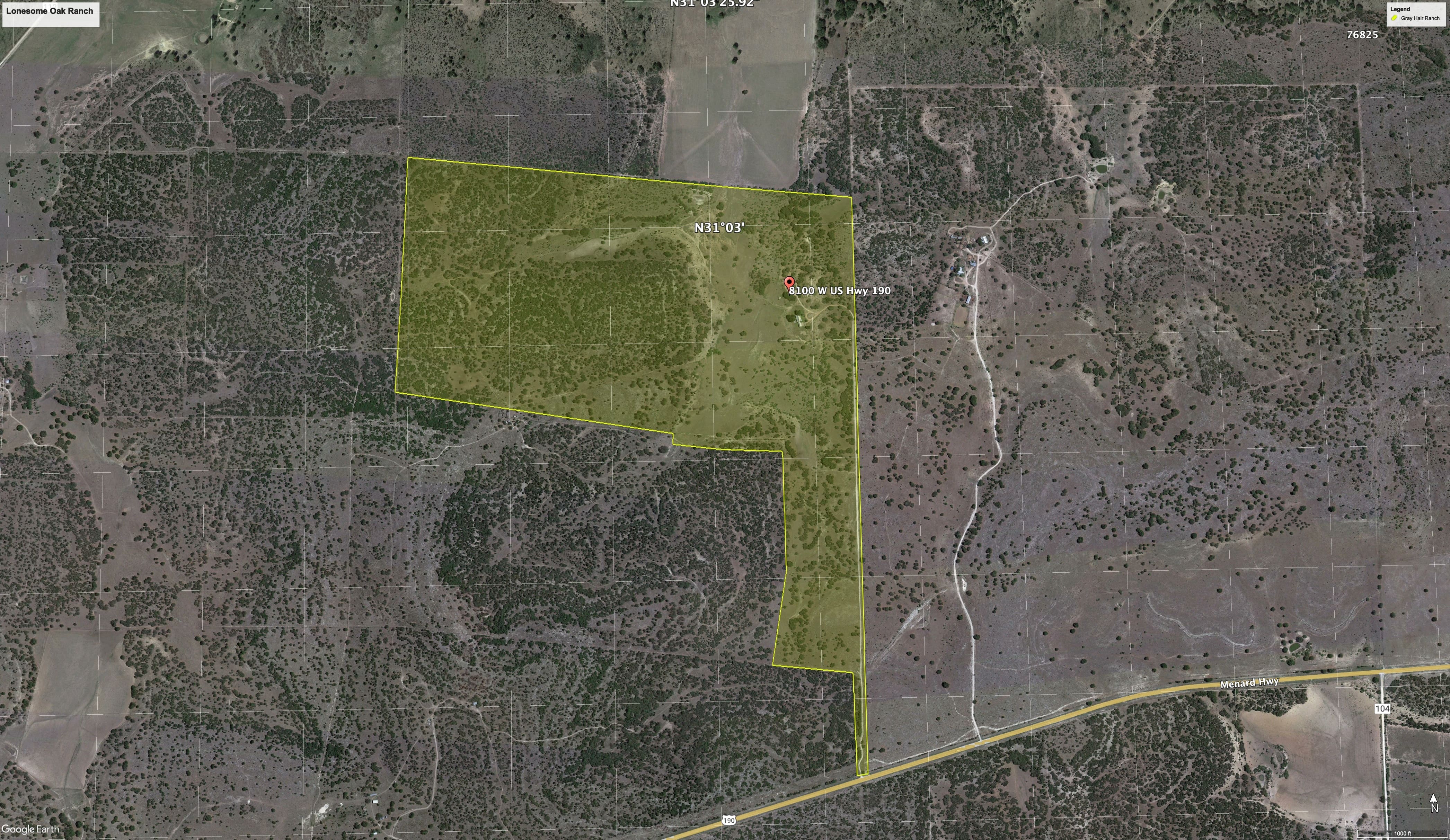 ACCESS: The entrance is on the north side of Highway 190 through a locked gate. There is a fenced right of way into the place for approximately ¾ of a mile allowing for privacy. The right of way is owned by the seller and there are no other easements except for utility easements.